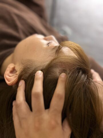 水を使わないバリ式の手技 + リンパドレナージュを組み合わせた当店完全オリジナルの至高のドライヘッドスパ。