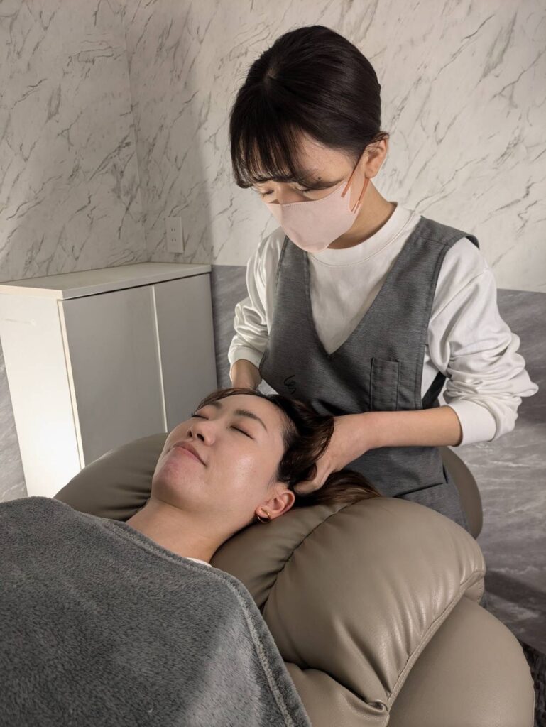 その後さらにドライヘッドスパで頭皮や体をほぐしていくと、