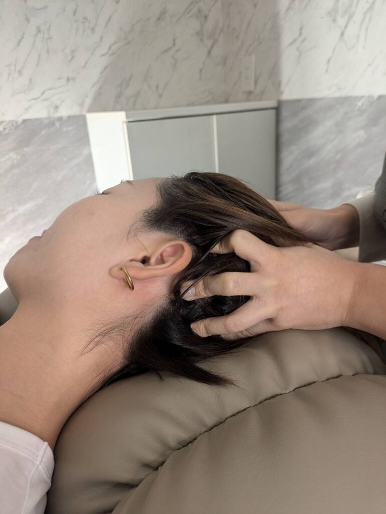 ドライヘッドスパでは、頭・首・こめかみ周りをやさしくほぐすことで、